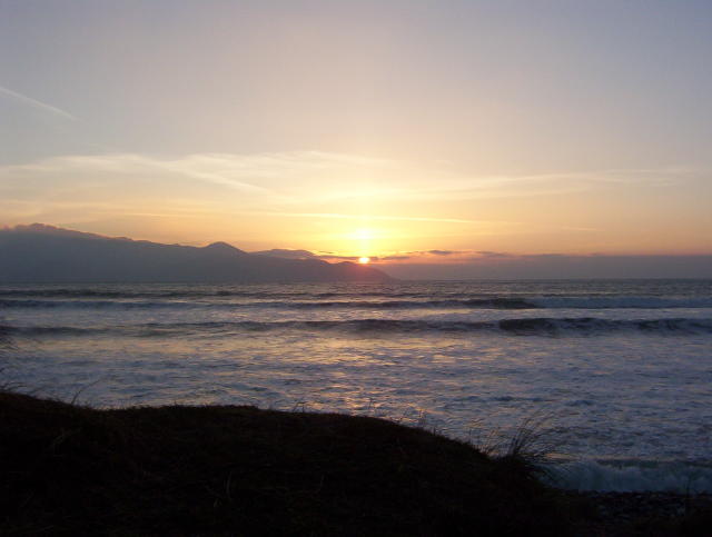 We moseyed on back to the B & B, hosed off, grabbed a bottle of wine and headed to the beach for sunset. Beautiful, the waves made plenty of splooshes.