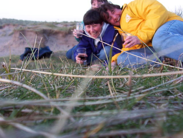The Irish saddles are a lot different than Western saddles. Gavin said, "Western saddles are like arm chairs." Every time we trotted, I got banged around in the saddle; I couldn't seem to get a rhythm going. When we galloped, I had to grab the horse's mane (no shoe horn on the saddle) while I flopped around. I really think my stirrups were too long. At one point on the beach, something spooked my horse and it did a couple sideways jumps. I felt I must be advanced since I didn't even fall off. A little bit later, Gavin started galloping down the beach, jumping, that's right, jumping his horse over seaweed piles. My horse, Blackie, followed right along. When I let out a screech, Gavin turned and realized my horse was following and immediately stopped. So much for being advanced. At the end, when Gavin took our horses away, Robyne whispered to me, "do you want to invite him along for wine on the beach?" "Robyne," I replied, "he's only 14." That Robyne, what are you going to do.
